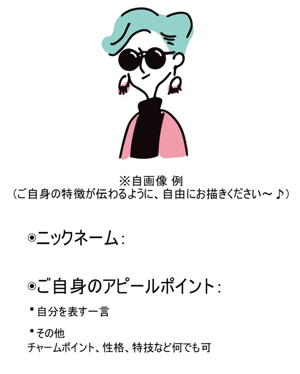 ぜひ、世界に一つだけのあなたの自画像とアピールポイントを書いてご参加ください。